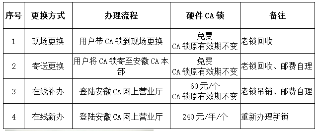 备注:如不方便到现场免费升级的用户,如证书已过期建议重新办理一把“徽采云”证书(费用新办240/年,点击跳转至办理专区),如还没有过期建议在线补办(补办时选择原项目名称)。安徽CA本部(寄送)地址:合肥市政务区聚云路138号白天鹅国际商务中心B座18F 罗经理收 (联系电话:400-615-8899)。